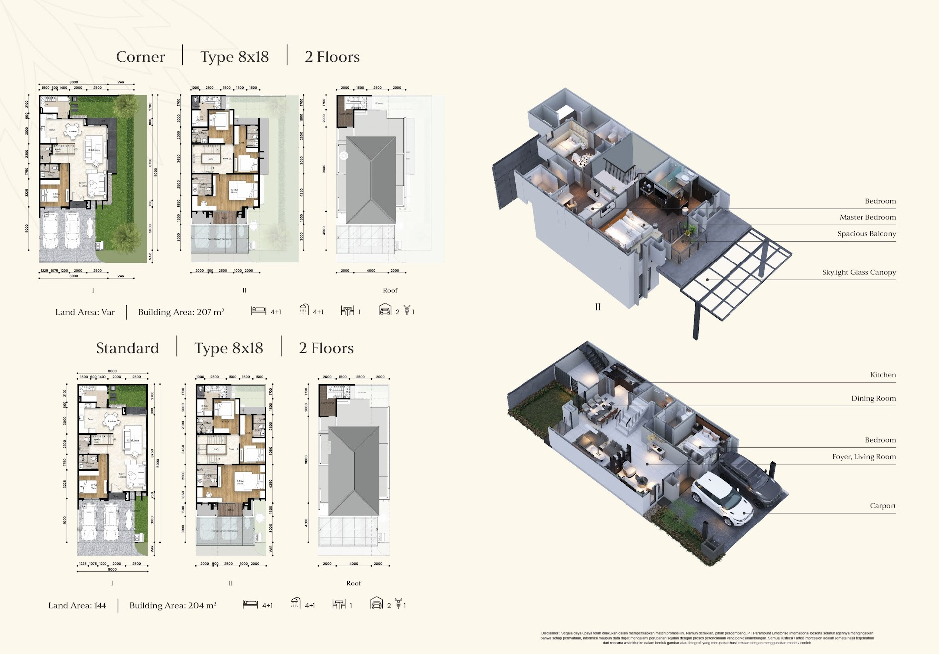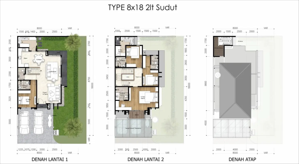 Dilengkapi dengan carport yang dapat menampung 2 mobil, tipe ini juga menonjolkan skylight canopy yang memberikan penerangan alami dan menambah kesan modern serta elegan pada rumah. Ideal untuk keluarga besar, tipe 8×18 – 2 lantai ini dirancang untuk memberikan kenyamanan maksimal dan fungsionalitas tinggi dalam satu paket hunian premium.